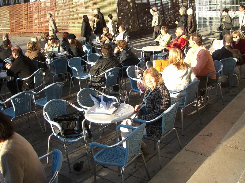 | Marsha and I enjoy a small bite and a glass of vino |