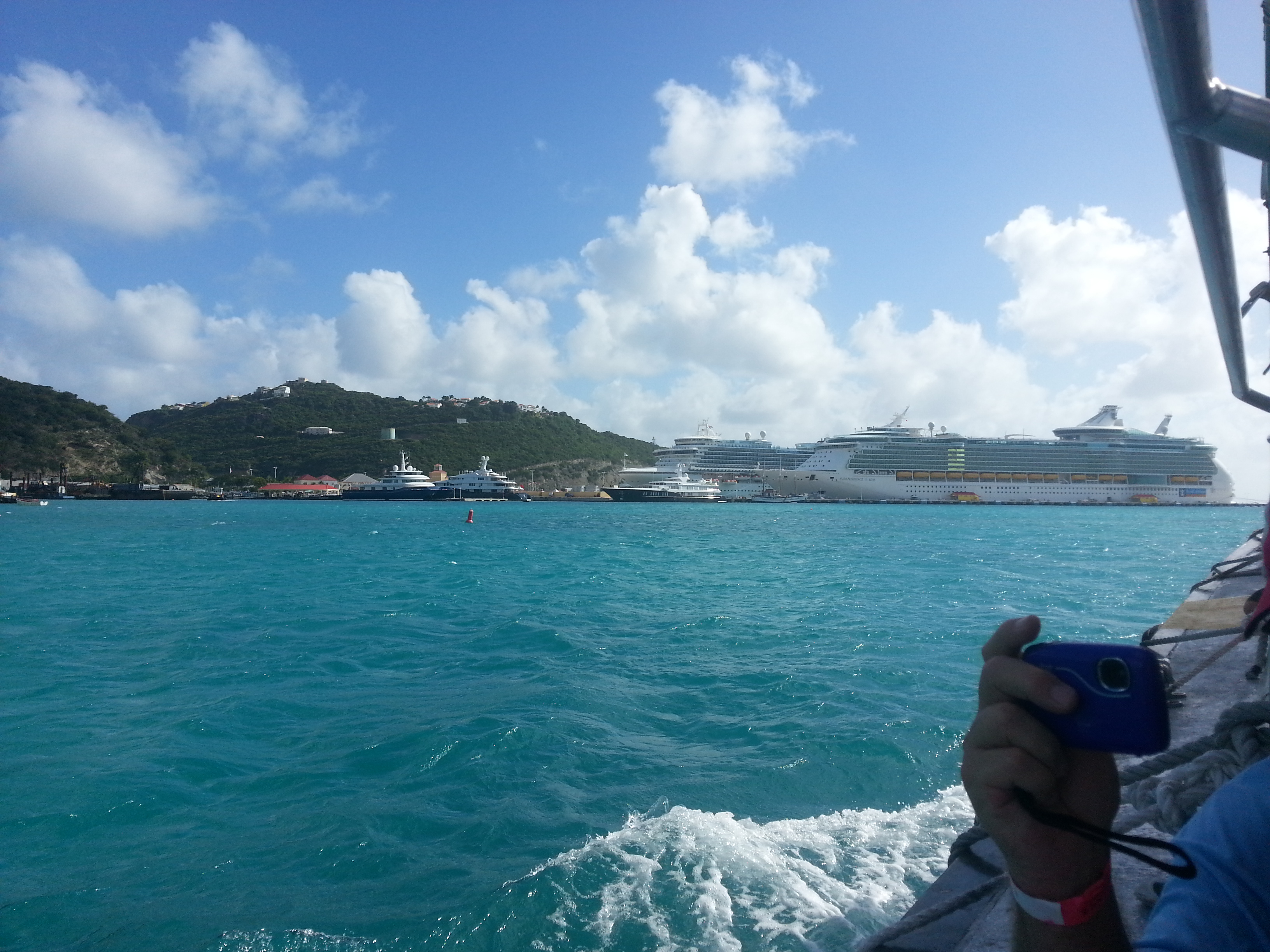Taking the water taxi back to our ship in St Maarten.